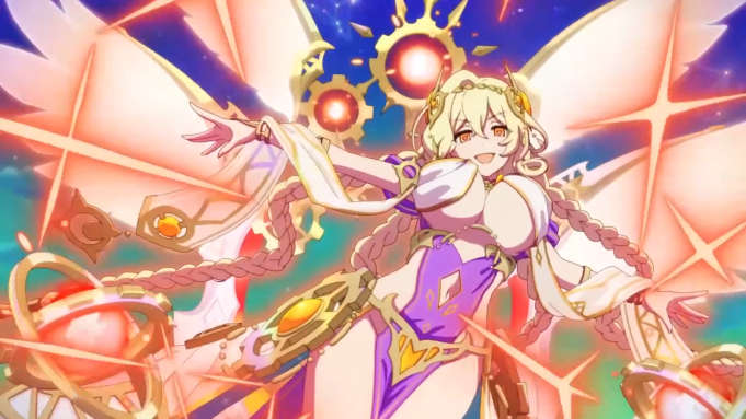 後衛で、民とハーモニーを奏でる天使の姫君。ステータスアップ効果を受け【エクスマキナ】が溜まると行動パターンが変化し、絶え間ない弓撃で神威を示す。