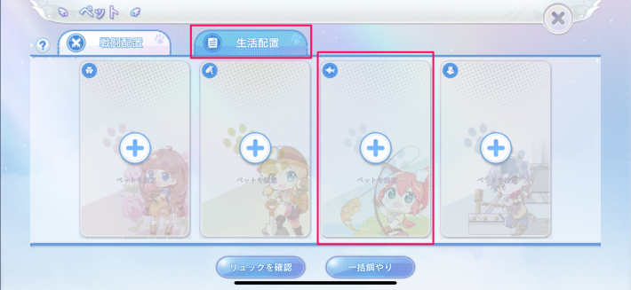 ペットのスモーキーを生活配置の釣りの欄に編成し、かつ機嫌値が0でなければ、自動釣りの速度を20~40%アップしてくれます。さらに特性の真面目が付与されることで更なる時短を狙えます。