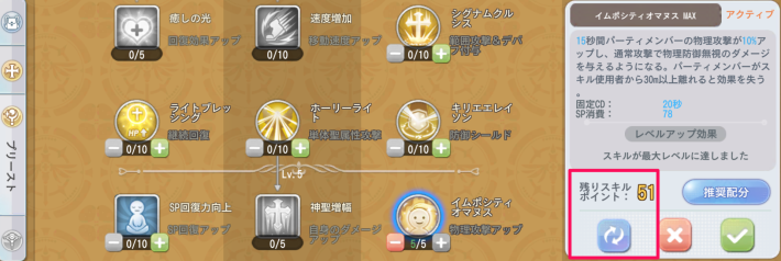 2次職に転職したてでもスキルリセットを行うことで、1次職で得たスキルポイントを2次職のスキルに振ることができます。