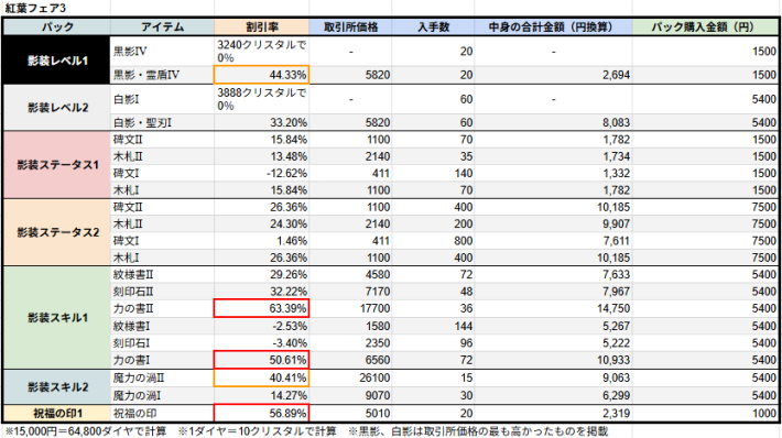 紅葉フェアでは影装とペットの強化素材が販売されています。影装やペットの強化を早く進めたい場合は購入を検討しましょう。