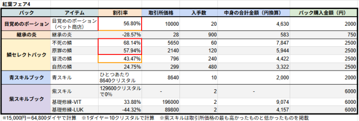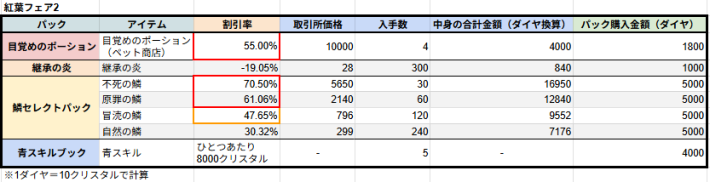 橙ペットの強化に必要な不死の鱗が最も割引率が高く、紫ペットに使う原罪の鱗も割引率が高めに設定されています。高レアリティペットの強化を進めたい場合は購入を検討しましょう。