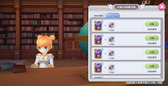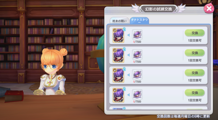 タナトスタワー実装に伴い、タナトスコインで交換できるショップが開放されました。タナトスタワーのショップでは、8種類の新しいカードと影装素材が交換できます。