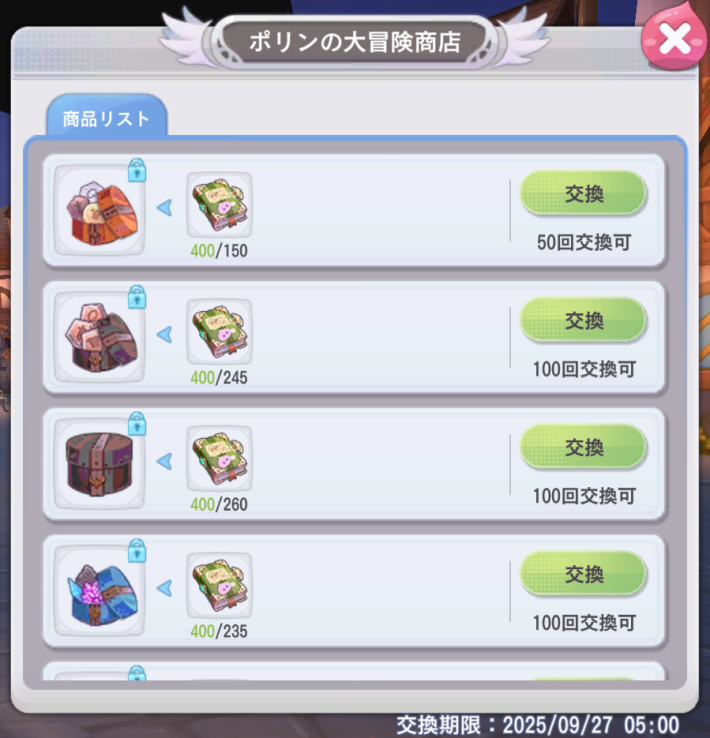 - 祝福消費で入手したイベント素材で他のアイテムと交換