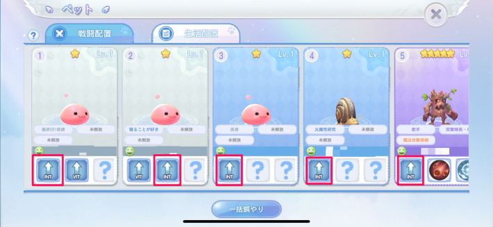 | 基礎修練‐INT | ペットが出撃中または待機中の場合、主人のINTが(63/50/41)アップする |
