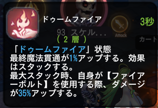 フレイムブラストは移動もできるスキルのため、緊急回避にも使えます。また対象の移動速度を下げるほか、ドゥームファイアも取得することで最終魔法貫通を大きく伸ばせます。