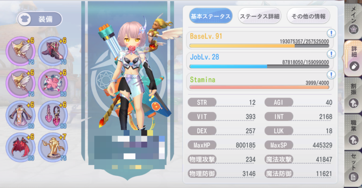 パッシブスキルの効果で射程を伸ばせるほか、SP消費増加と引き換えに、最終魔法貫通を増加させることができるようになりました。SPの消費が激しくなるため、紫ポーションのストックなどSP管理が大切です。
