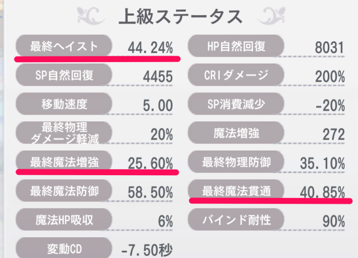 | INT 最終ヘイスト 最終魔法貫通 VIT |