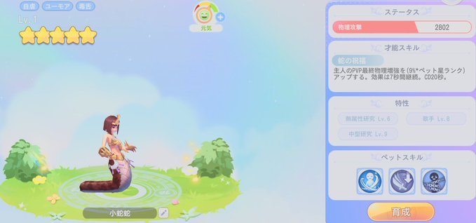 | 基礎修練‐VIT | ペットが出撃中または待機中の場合、主人のVITが(63/50/41)アップする |