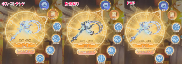 | 武器 | 種族特化 最終物理増強%(汎用) 最終物理貫通%(汎用) PVP PVP最終物理増強% PVPデバフ貫通% PVPデバフ増強% |