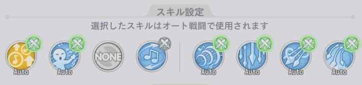 火力が足りていればニヨルドの宴を使用し、火力が足りない場合はハミングを使いましょう。攻撃スキルは殲滅具合で調整し、中型の敵を3体をまとめて一撃で殲滅できたら他の攻撃スキルはオフにし、足りない場合は複数のスキルを使っていきましょう。