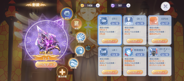 | Point! | 影装スキル効果でASPD上昇量が増えるスキルもあります。 |