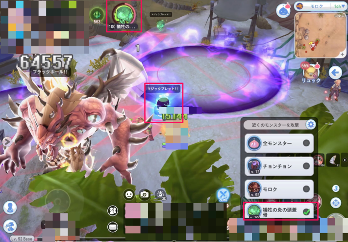 | ・前方へモロクが突進し、触れるとダメージ ・モロクの通過した位置に円範囲が3つ出現 ・円範囲が順次爆発してダメージ ・モロクから離れよう |