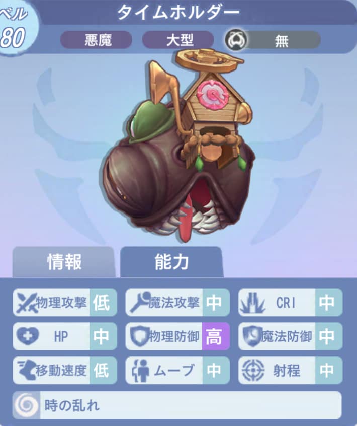 タイムホルダーは無属性のため、弱点属性はありません。種族・サイズ特化でボスに大ダメージを与えましょう。