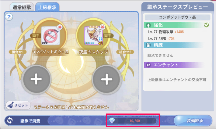 Point! | 武器の種類が変わる際の継承にはダイヤが必要です。 |