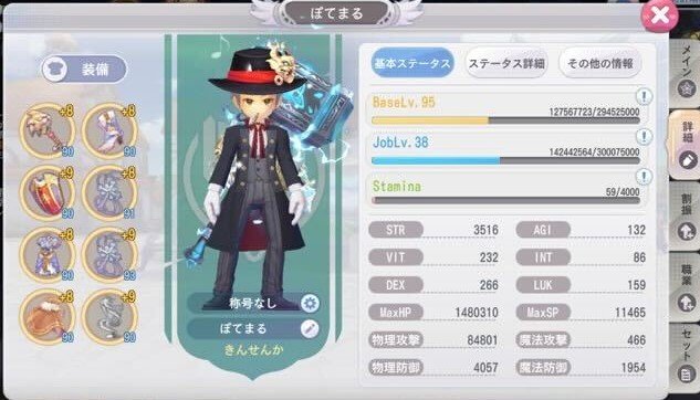 通常攻撃とスキル攻撃力をあげるために、STRは優先して上げていきましょう。Hitや耐久などバランスをとるのにDEXやVITも上げますが、こちらはペットスキルで調整がおすすめです。
