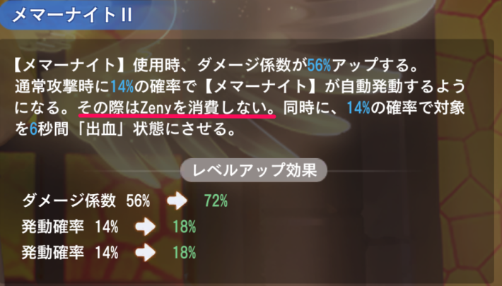 自動発動のメマーナイトなどは、使用時に消費するZenyがないため、金策に追われることなく高い効果でダメージを与えられます。