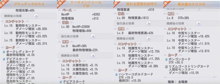 | 碑文 | STR=物理増強=ASPD>CRI>CRIダメージ>LUK |