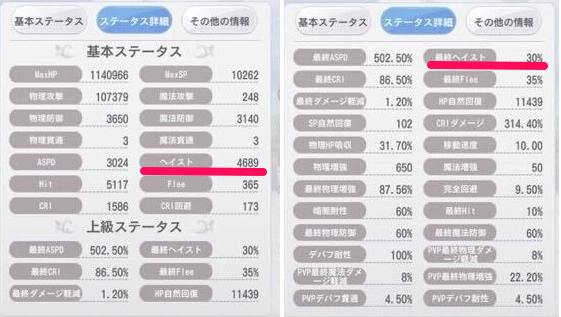 ASPDは主に武器で上げており、通常攻撃クリティカルでスキルCDを減らしています。