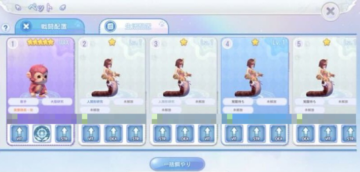 | 基礎修練‐VIT | ペットが出撃中または待機中の場合、主人のVITが(63/50/41)アップする |