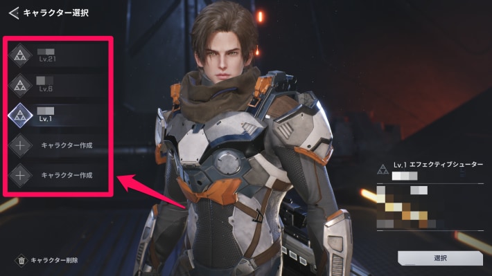 キャラの削除はいくつかの条件に加えて対象のキャラがレベル40にならないとできません。気軽に削除できないため、キャラメイクは慎重に行いましょう。