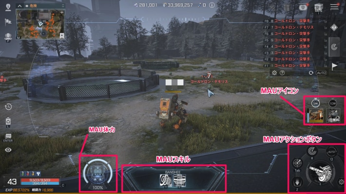 MAUはMAUアイコンを選択またはスワイプすることで出撃できます。ほとんどの操作は生身と同じですがジャンプができないなど、一部操作が異なっています。