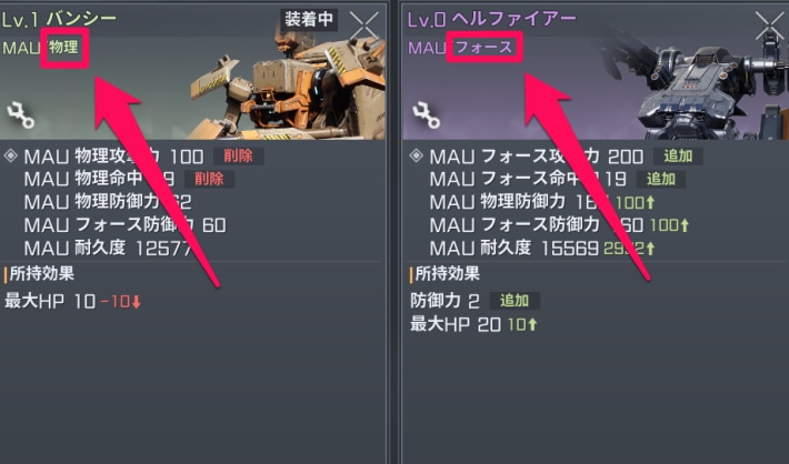 MAUやランチャーもタイプが違うため、場面に合った機体を選択するようにしましょう。