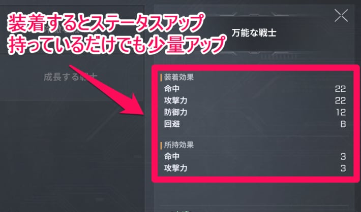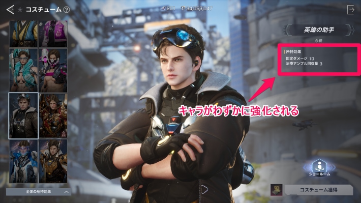 コスチュームを獲得すると所持効果としてステータスが上昇します。所持するだけで恩恵が得られるため、複数のコスチュームを持っている場合は、複数の所持効果を同時に得られます。