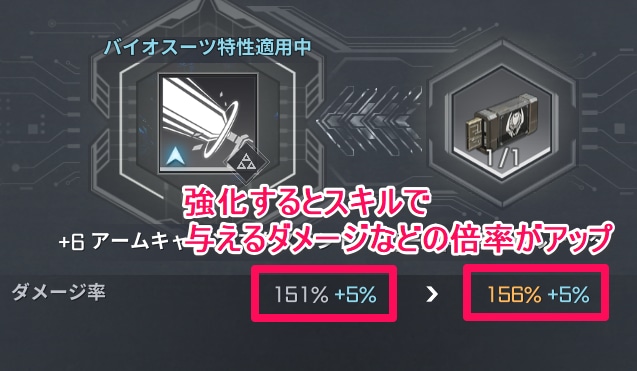 スキル強化アイテムを使用してスキルを強化すると、倍率や効果量が上昇します。