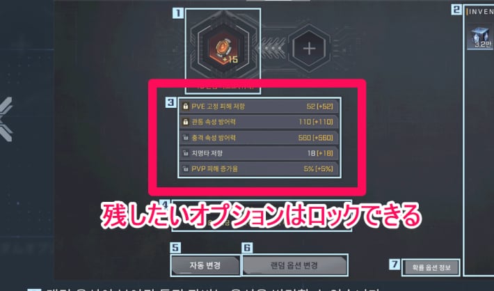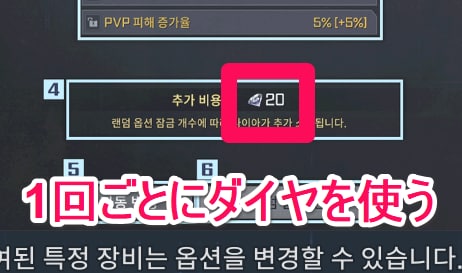 すでにオプションの付いた装備を選択し、残したいオプションをロックしておくと、それ以外のオプションを再抽選できます。