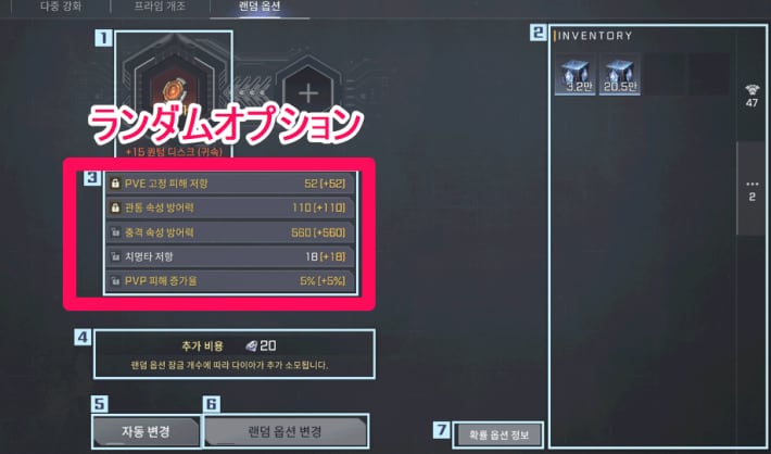 装備に付与されたランダムオプションを付け替えることができます。再抽選することで、固定/割合でステータスが上がるため、足りないステータスを補強できます。