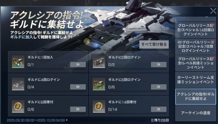 特別なギルド支援イベント「アレクシアの指令!ギルドに集え!」が開催中です。 イベント期間中、ギルドへの加入・出席・寄付に関連した ミッションを達成し、ギルドコインを獲得しましょう!