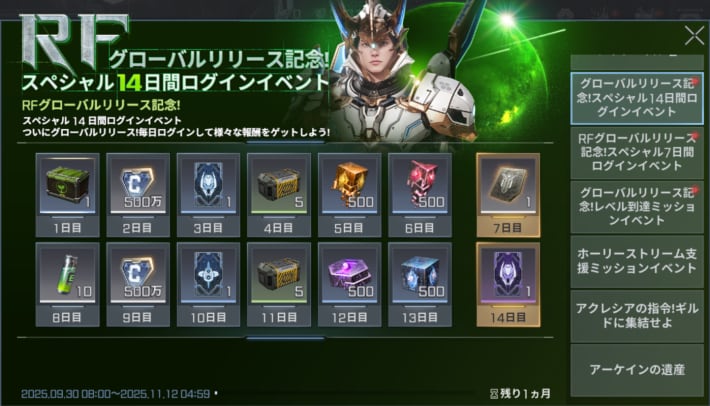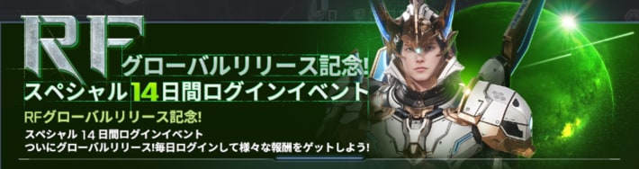 RF ONLINE NEXT のグローバルリリースを記念し、 14日間、豪華な報酬がもらえるログインボーナスイベントを開催中です。 イベント期間中は欠かさずログインして、ローヴァ召喚チケットやバイオスーツ召喚チケットなどをGETしましょう!