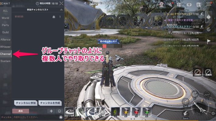 個別ではなく複数人のフレンドと会話したい場合は、チャットメニューからチャンネルを作成しフレンドにチャンネルコードを教えましょう。