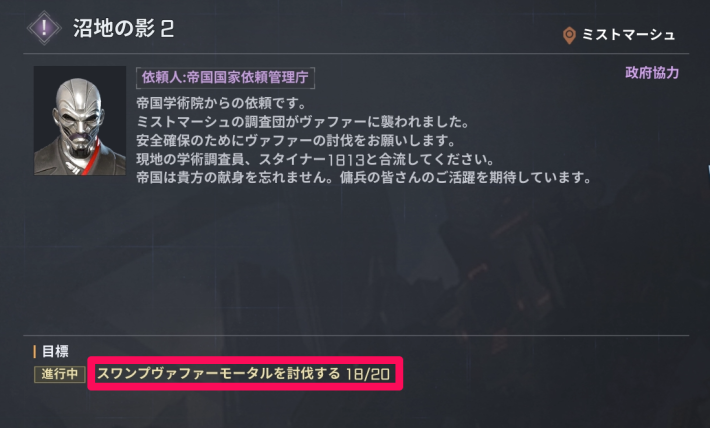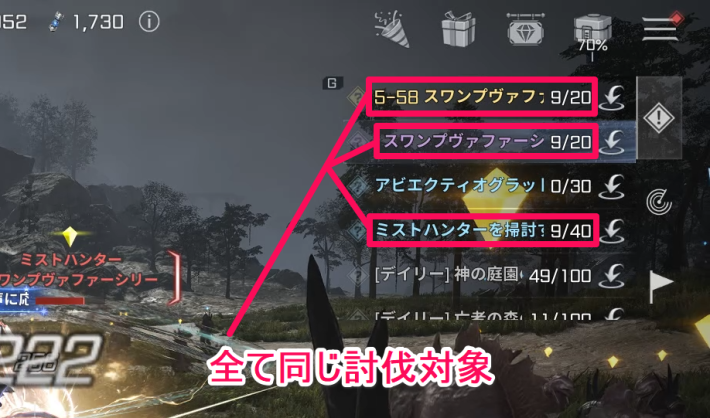 討伐系の任務は他のクエストやミッションと目標が被ることがあります。なるべく発生したタイミングで受注しておくと良いでしょう。