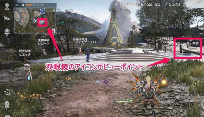 各拠点付近にあるビューポイントでも収集品を入手できます。拠点に到着した際はビューポイントに立ち寄りましょう。