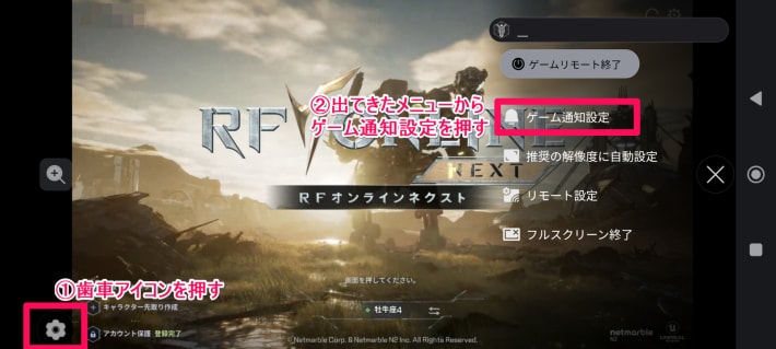 歯車アイコン▶ゲーム通知設定を押すことで、バックグラウンドでも通知を受け取れます。細かく設定できるため、必要な項目をオンにしましょう。