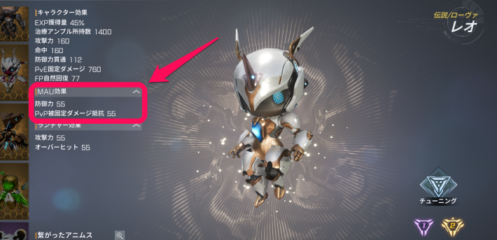 ローヴァのMAU効果によってもMAUに乗った際のステータスを強化できます。MAU効果でローヴァを選ぶのもおすすめです。