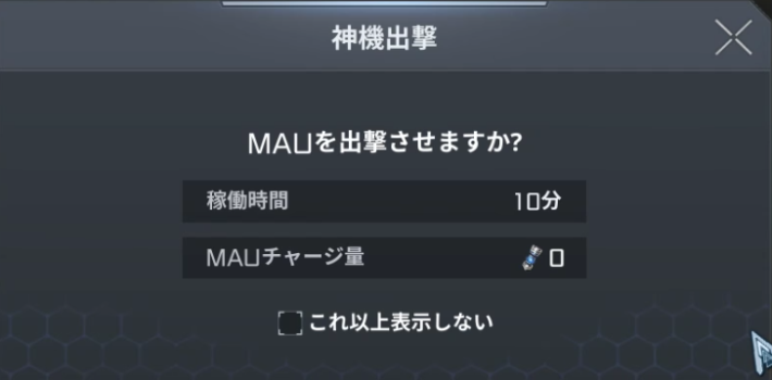 不要になったMAUは降りて回収ができます。回収後は30分のクールタイムと耐久値を修理する時間が必要ですので、状況に応じて活用しましょう。