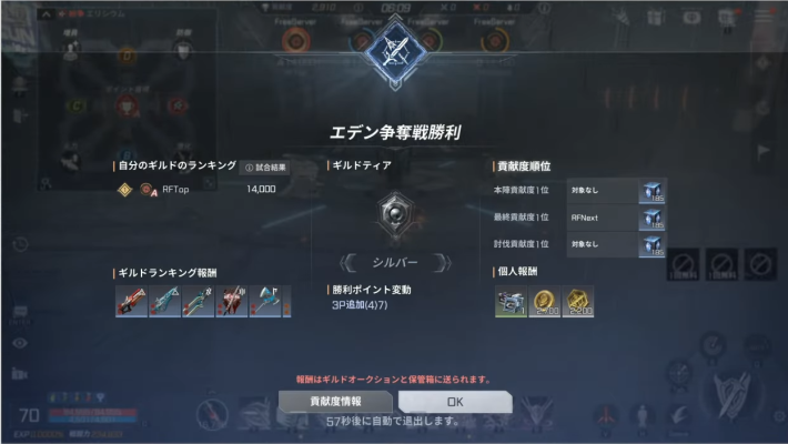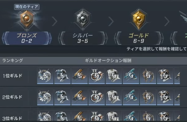 現在のギルドのティアに応じて貰える報酬のラインナップが変わりますが、ティアが低くてもエデン争奪戦コインなどの貴重なアイテムが貰えるため、積極的に参加して報酬を入手しましょう。