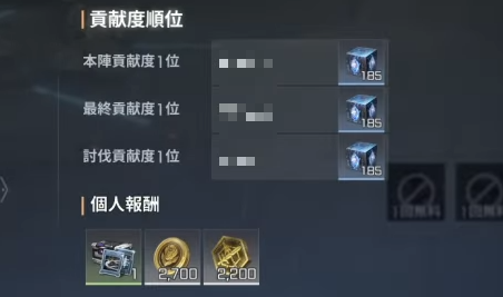 個人報酬は主に参加メンバーに配布されるもので、個人報酬と貢献度報酬に分かれています。個人報酬はエデン争奪戦に参加するだけで貰えますが、貢献度報酬は戦闘中の貢献度が高かった人だけが入手可能です。