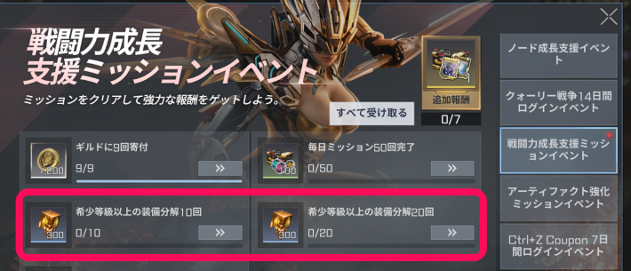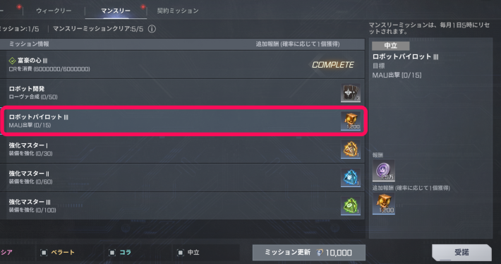 | ▼ミッション | 【おすすめ度】★★★★☆ ・マンスリーなどでまとめて入手 |