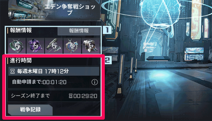 メニュー▶エデン争奪戦から開催日時を確認することができます。参加忘れを無くすために、ギルドチャットやギルドのお知らせでギルドメンバーに開催日時を告知するなどして、事前準備を済ませておきましょう。
