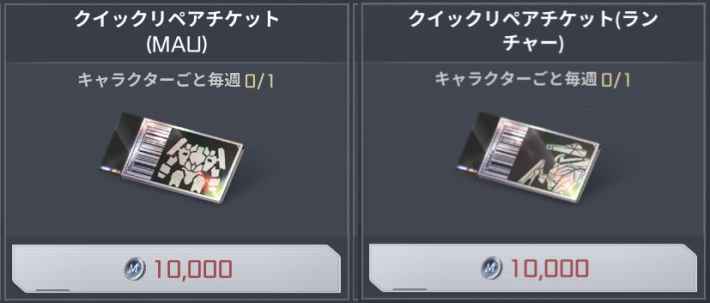敵に破壊されてしまった神機は、一定時間のクールタイムの後でしか出撃できなくなってしまいますが、ショップに売っているクイックリペアチケットを使うことで該当の神機を即出撃OKの状態にすることができます。