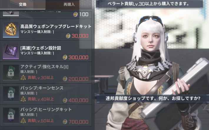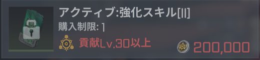 各国家ごとに取得できるスキルが違いますが、その中でもおすすめなのはベラートのトークンで交換できる、「強化スキルⅡ」です。強化内容はバイオスーツごとに異なりますが、どれもキャラの特徴を引き伸ばす効果を持つためとても強力です。