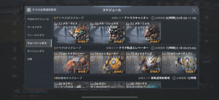 ウォーゾーン内にも通常のフィールドと同じくフィールドボスが存在します。決められた周期ごとに出現するので、ギルドやパーティーで挑戦する場合は互いにダメージを与えるのを避けるためにメンバーは同じ国家に所属しておきましょう。