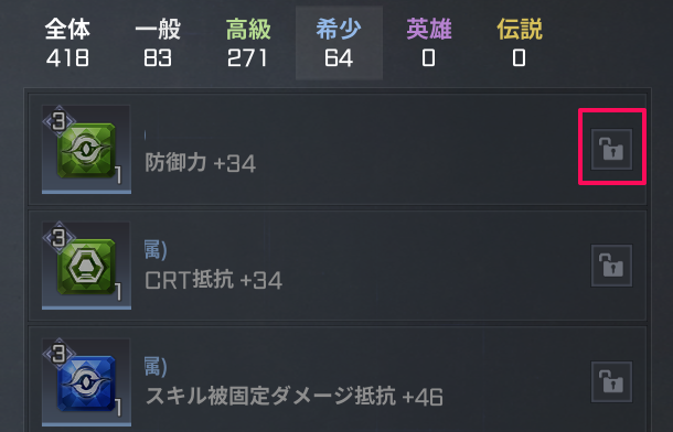 自分が使いたいタリックを合成してしまうのが心配な人は、ロック機能を使いましょう。一括で合成をするときにも、ロックをかけているタリックは除外されます。