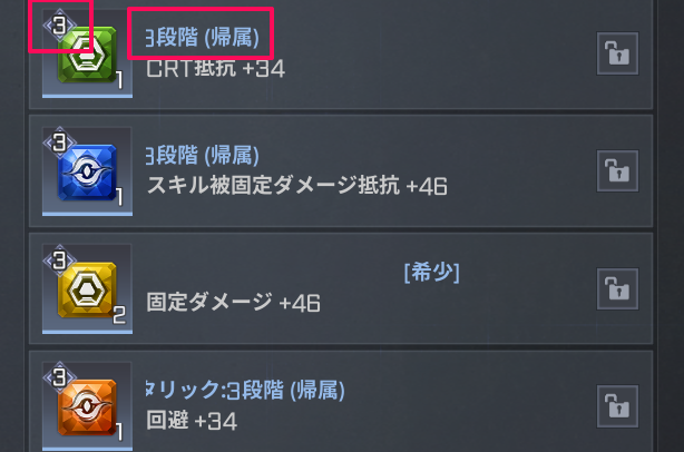タリックの段階はアイコンの左上に表示されている数字と、「〇段階」のテキストから確認することができます。