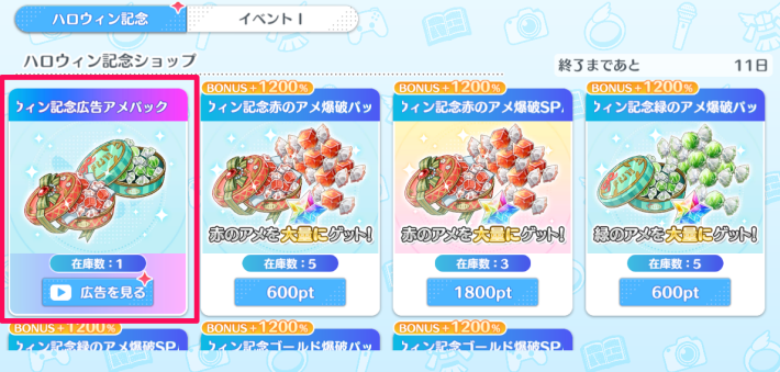 | 開催期間 | 予告期間:10/21(月)13:00~10/24(木)11:59 1日目:10/24(木)12:00~10/25(金)3:59 2日目:10/25(金)4:00~10/26(土)3:59 3日目:10/26(土)4:00~10/27(日)3:59 4日目:10/27(日)4:00~10/27(日)23:59 |