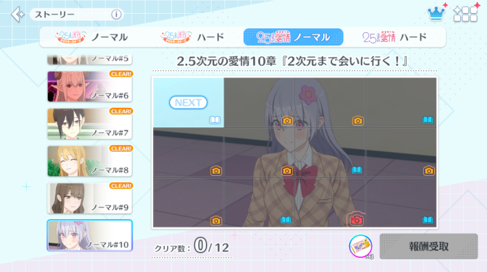 メンテナンスでは、2.5次元の愛情ストーリー10章も追加されました。10章を最後まで視聴する事で、連動ミッション達成からプレミアムガチャチケットが1枚追加で貰えます。