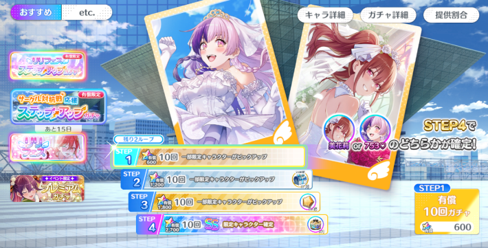 過去に実装された限定キャラの一部がレギュラーガチャに追加されました。753♡やノノア、喜咲アリアはレギュラーガチャでは、同名キャラを引く事が出来なかったので、アップデート後からいつでも入手可能な状況となります。